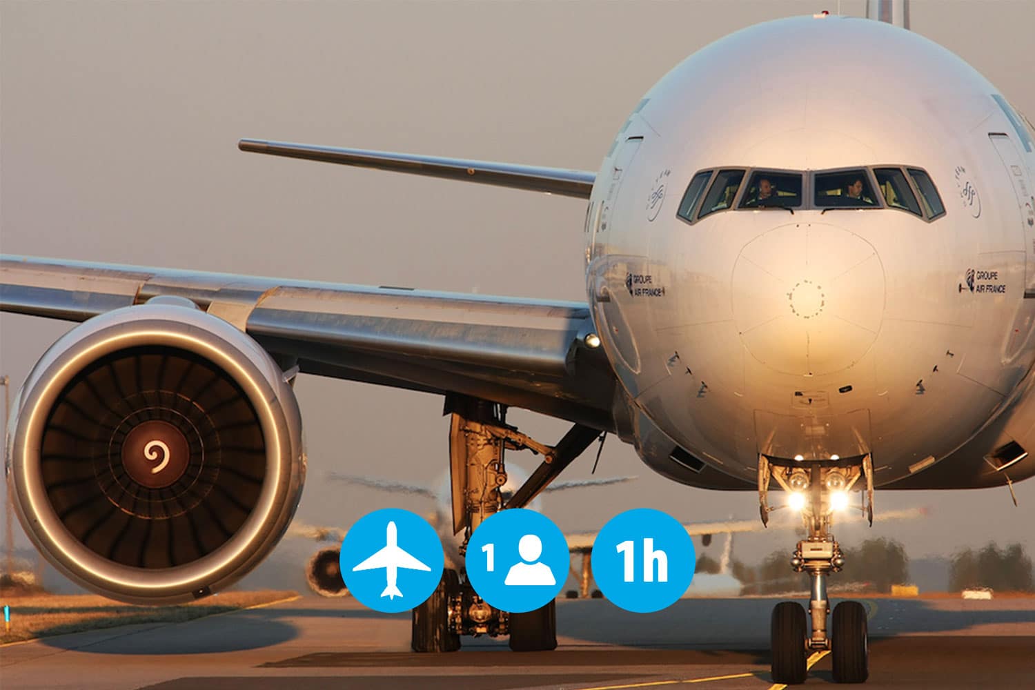 Les accompagnateurs peuvent suivre votre vol avec vous dans le cockpit du simulateur avion de ligne (2 accompagnateurs maximum).